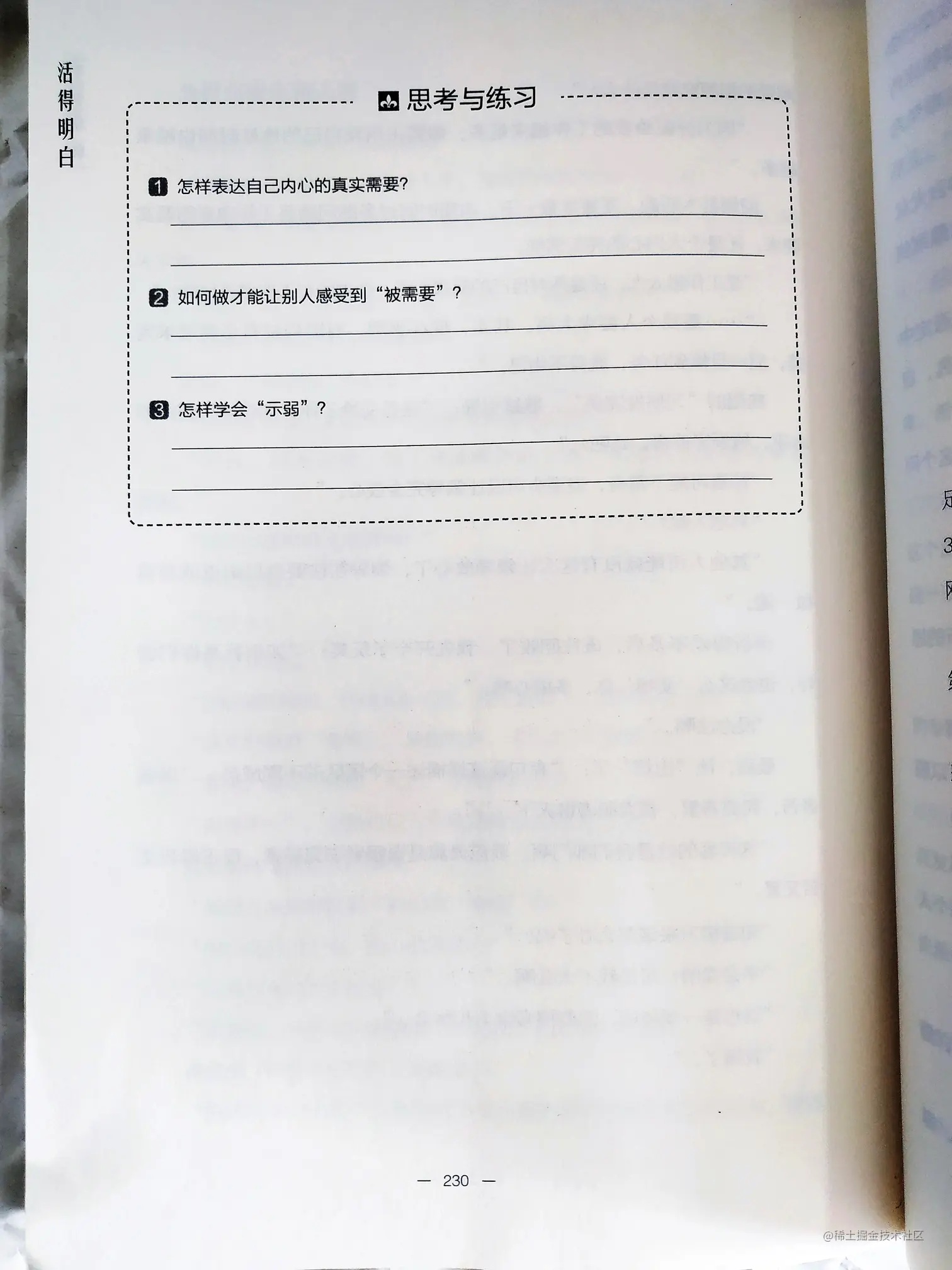 --如果你表达了,他们没有帮助你,那是他们的问题(PS:如果来访者的叙述是表达了但是对方没有帮助,咨询角度就应该转到来访者处理人际关系方面了吧);而如果你没有表达,甚至还表现得不需要,没有得到帮助是正常的。