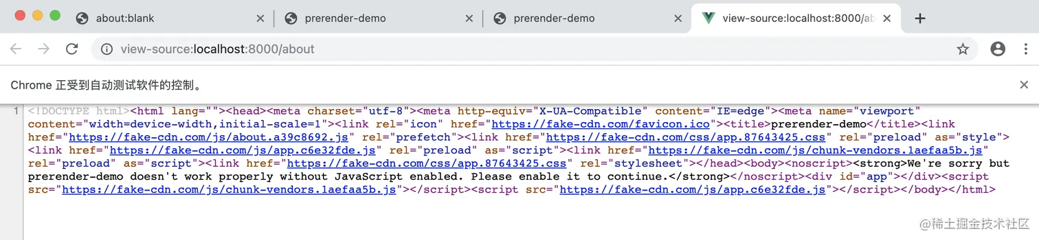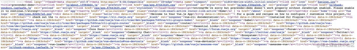 使用 Prerender SPA Plugin 构建的 html