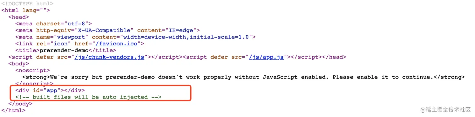 未使用 Prerender SPA Plugin 构建的 html
