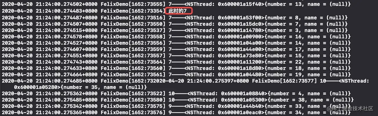 NSLog(@"%d————%@", a, [NSThread currentThread]);