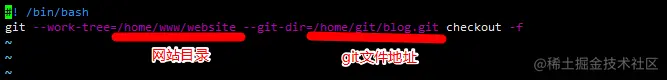 9. 创建脚本,仓库有提交会自动执行vim /home/git/blog.git/hooks/post-receive