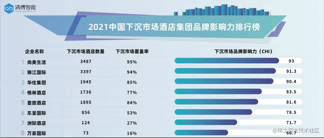 以“小镇之王”尚美生活来讲,《HOTELS》杂志公布的2020年度“全球酒店集团225强”排名,尚美名列全球第14名。另据清博智能分析报告显示,2021中国下沉市场酒店集团品牌影响力排行榜中,尚美生活位居榜首。