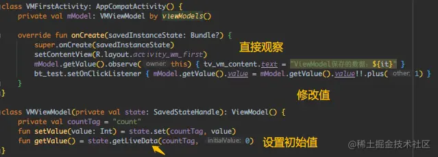 tv_vm_content.text = "ViewModel保存的数据:${++mModel.mCount}"