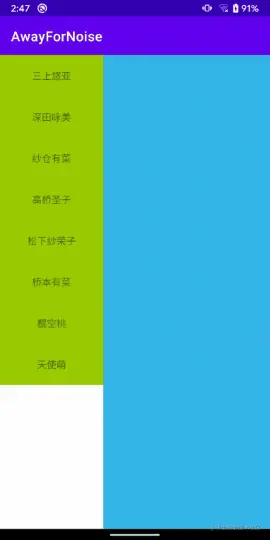 各有利弊,而采用ViewModel,只需 指定作用域,即可轻松实现跨页面通信。写个烂大街的经典例子:点击列表Fragment,更新右侧内容Fragment,预期效果如下: