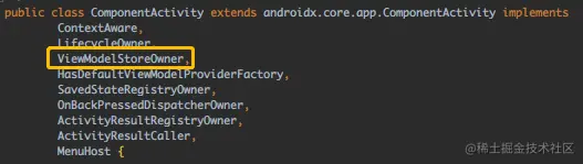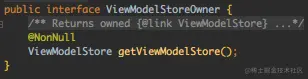 ViewModel好像就这个能问了,简单的探一探,使用 ViewModelProvider 实例化ViewModel时,传入 ViewModelStoreOwner 对象作为参数,Activity、Fragment自然实现了这个接口。跟下:ComponentActivity.getViewModelStore()