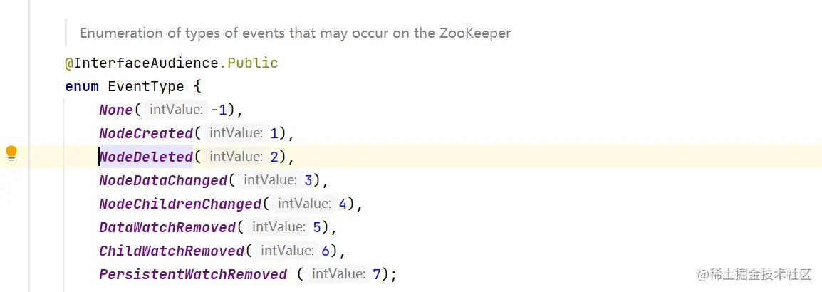由客户端生成 getType()对应的是Watcher里Event接口的枚举EventType,我们看看它的几个状态;