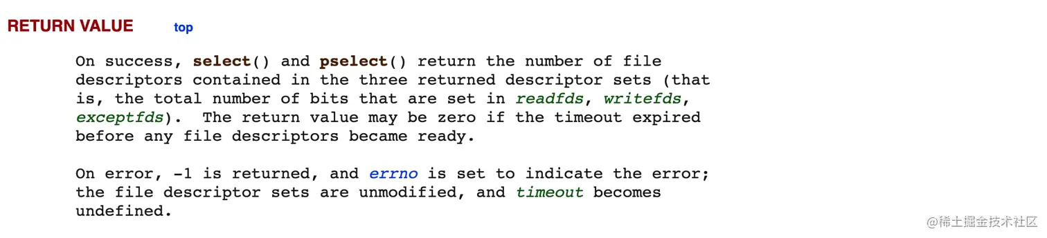 通过select()描述可以得知该函数允许应用程序同时监听多个fd,在fd可读可写之前会一直阻塞,同时还有一个很关键的点,那就是select()同时监听的文件描述符数量不能大于1024