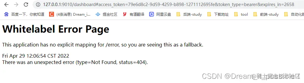 其中 redirect_uri和grant_type均配置在数据库里,如果没有登录,那么会先输入用户名和密码,登录成功后,会在地址栏上显示出token和失效时间。