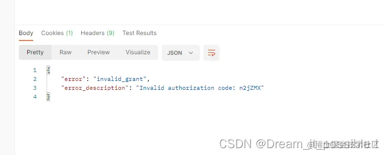 再次用同样的code去请求就会报错:Invalid authorization code: n2jZMX,必须重新访问/oauth/authorize重新申请一个新的code才行。