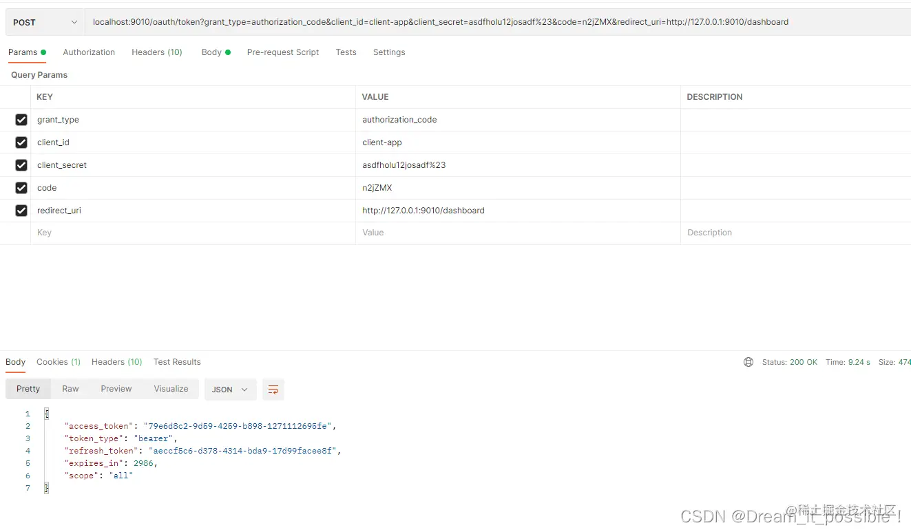 拿到code后,使用postman采用授权码模式请求token: