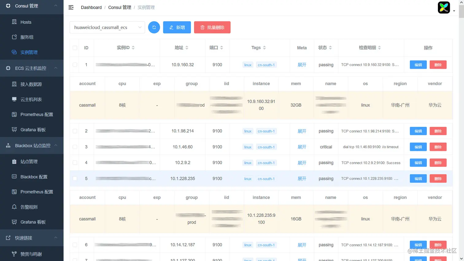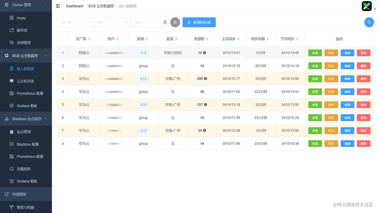 - 基于云厂商ECS的自动同步到Consul,并接入Prometheus监控。(设计了一个关联的Grafana看板)