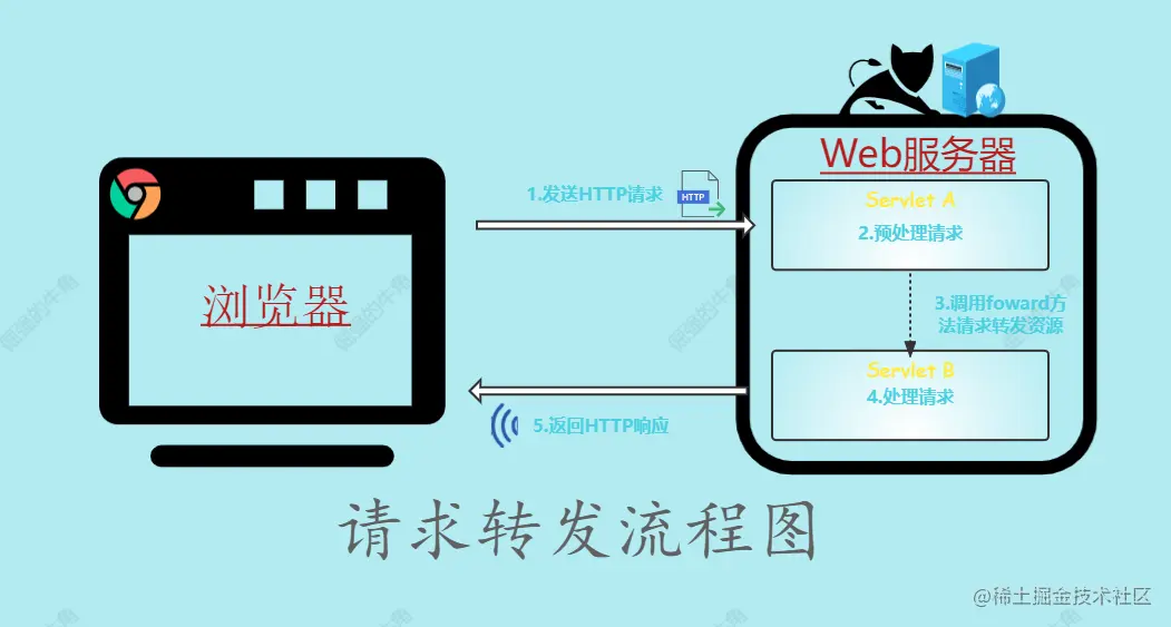 Servlet A到Servlet B的过程就叫请求转发