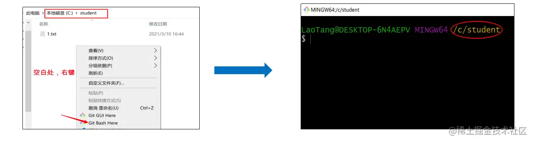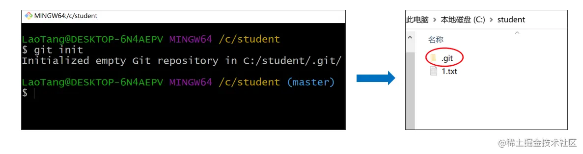 - 当我们看到项目文件夹中,已经有 .git 文件夹了,说明已经初始化过了,就不要再初始化了