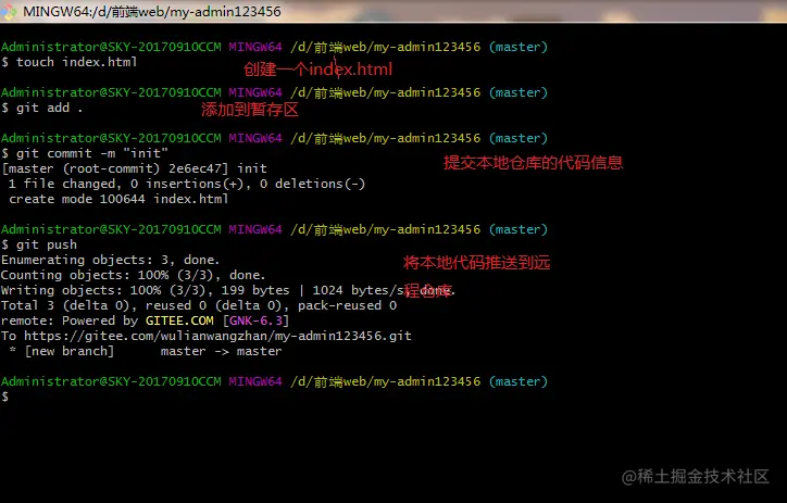 执行完后者,会弹出一个输入账号密码的框,填写 码云/github 的账号密码即可推送成功