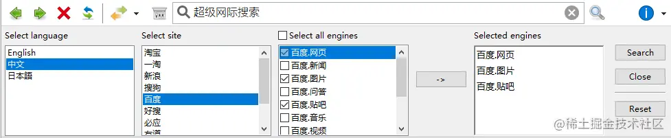 内置支持 50多个搜索引擎,并拥有详细的搜索分类