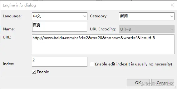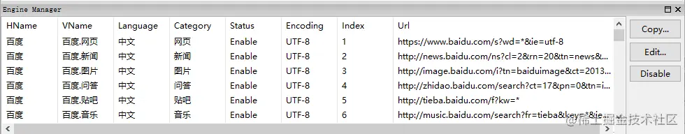 软件带有强大的搜索引擎配置工具,可以以复制方式增加搜索引擎,修改搜索引擎,有效无效。