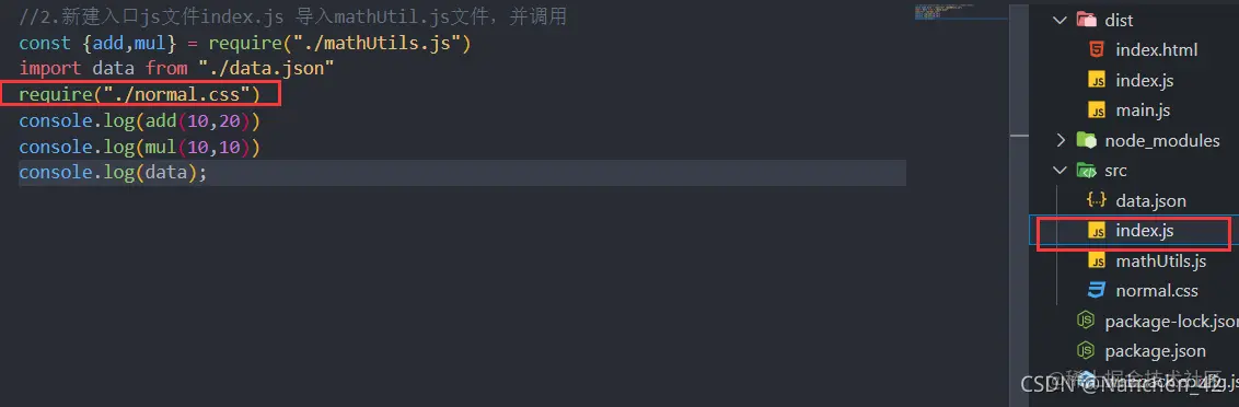 1.新建入口文件index.js和mathUtils.js,index.js是依赖于mathUtils.js