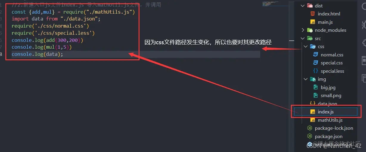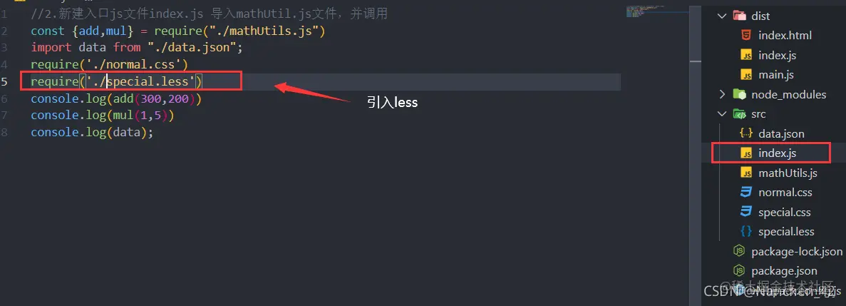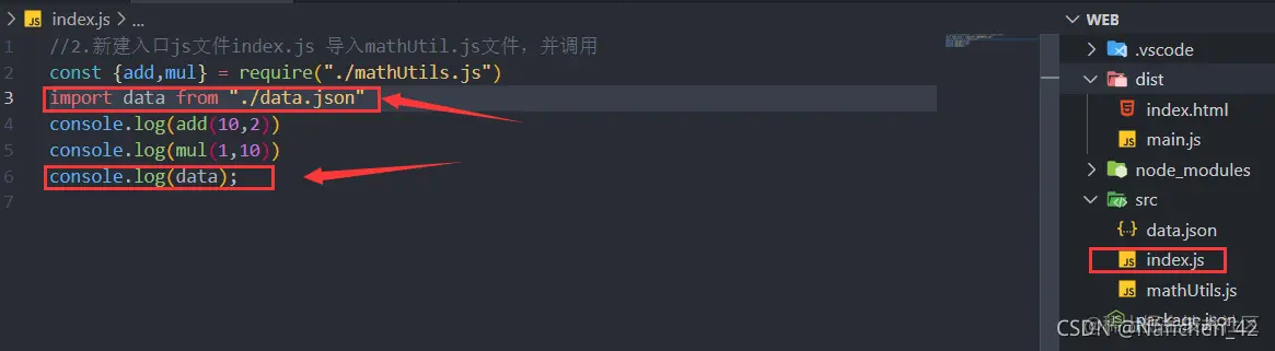 //2.新建入口js文件index.js 导入mathUtil.js文件,并调用