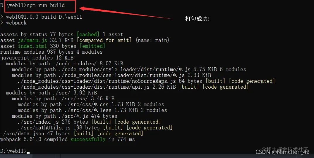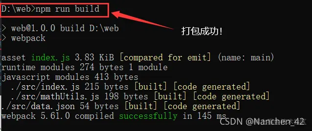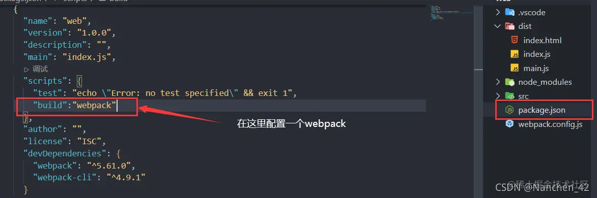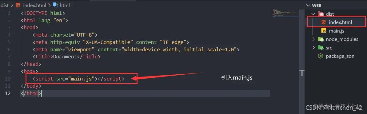 在dist文件夹中创建一个index.html页面,把main.js引入即可