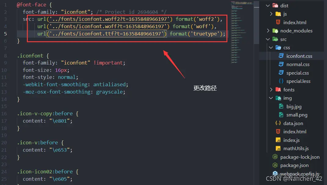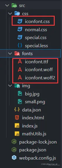 打开过后把框起来的文件放入src中的css文件夹以及新建的fonts文件夹