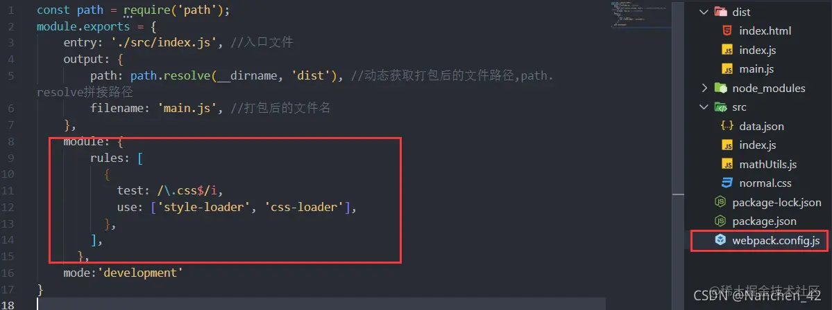步骤二:通过webpack.config.js中的modules关键字下进行配置