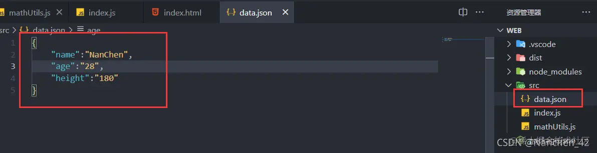 例如:在src文件夹中新建一个data.json文件,并对其输入一些json的语法