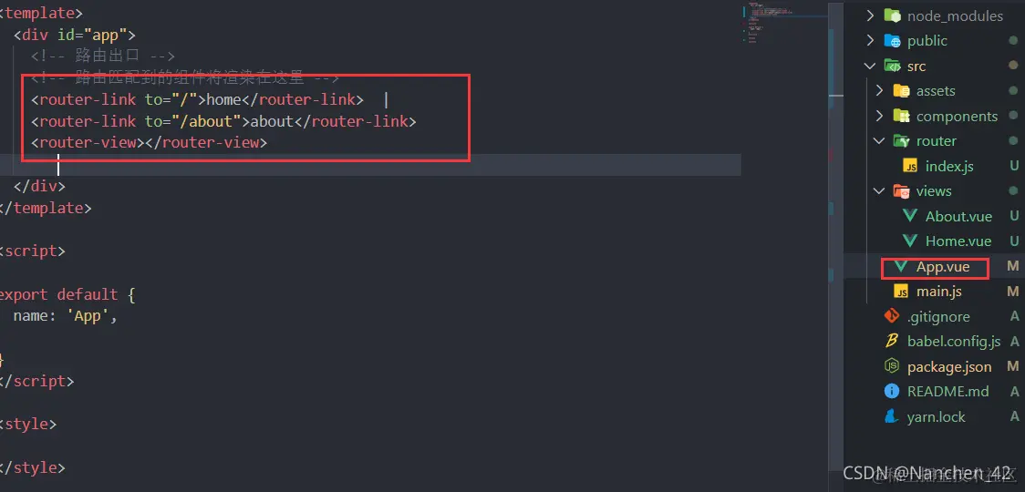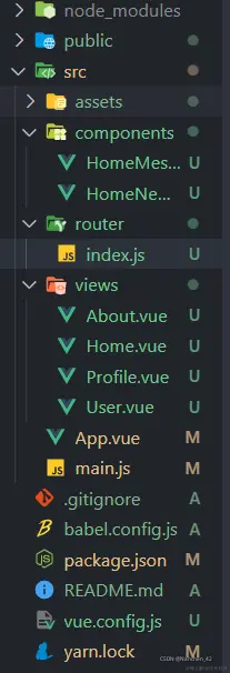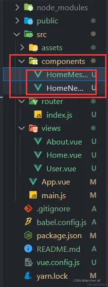 在src中新建一个名为views的文件夹里面新建About.vue和Home.vue文件