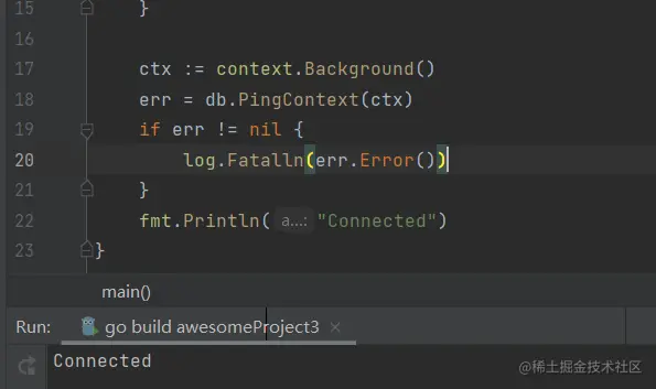 前面说了Open() 函数只是初始化连接到数据库所需要的各种配置,并不会真正地执行连接。真正的连接是在被需要的时候才进行懒设置的。