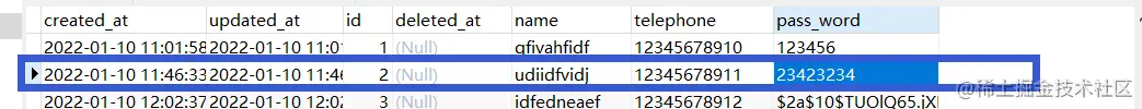 Scan(&a.id, &a.name, &a.telephone, &a.pass_word, &a.created_at)