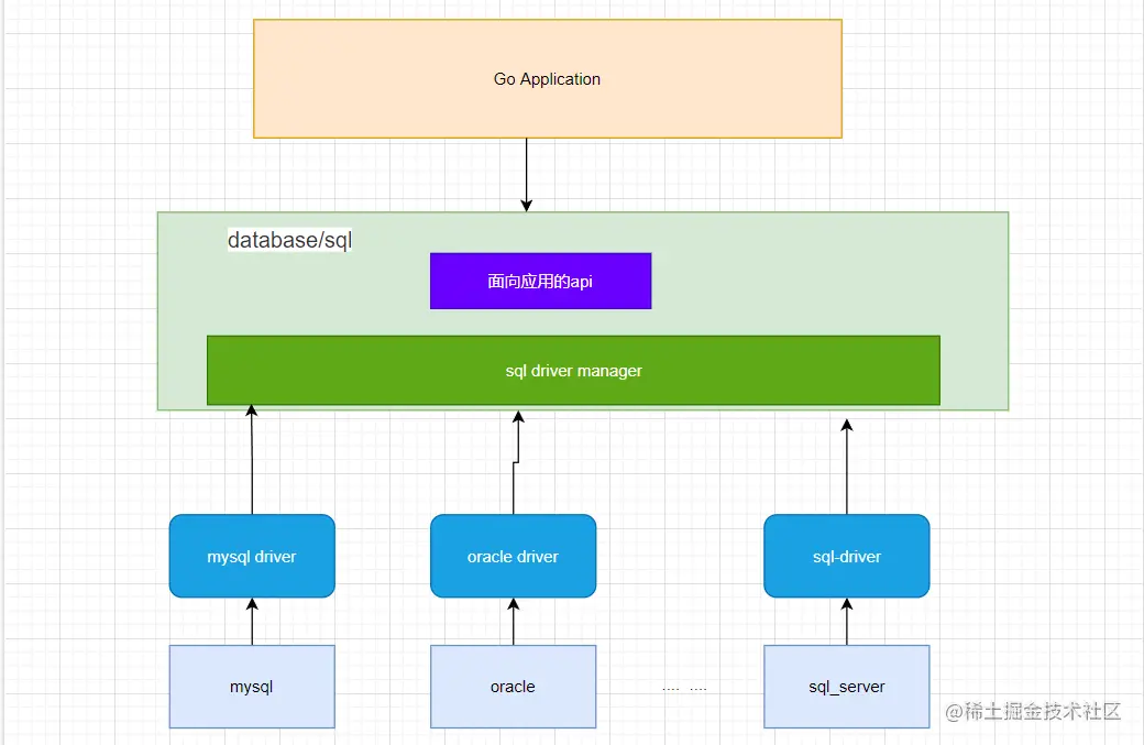之后我们会操作数据库进行增删改查,那么操作数据库的接口可以理解成driver-manager ,go语言database/sql包就是操作数据库的接口,也就是driver-manager