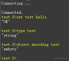 由于Redis对内存进行了极致的利用,为了节省空间,Redis底层会根据对象大小使用不同的数据结构来存储。通过encoding属性,Redis可以根据不同的使用场景来为对象设置不同的编码,大大提高了Redis的灵活性和效率。例如,常见的string类型,其底层实现就有int、embstr和raw三种编码方式。使用 object encoding key 命令可以查看对象的编码方式,如下所示: