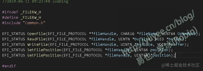 UEFI提供的文件访问比较简洁,分为同步访问和异步访问。我在实现的时候,只实现了同步访问的代码,异步访问的代码(带有“Ex”字样的函数,如OpenEx)可以参照书中的例子改造。