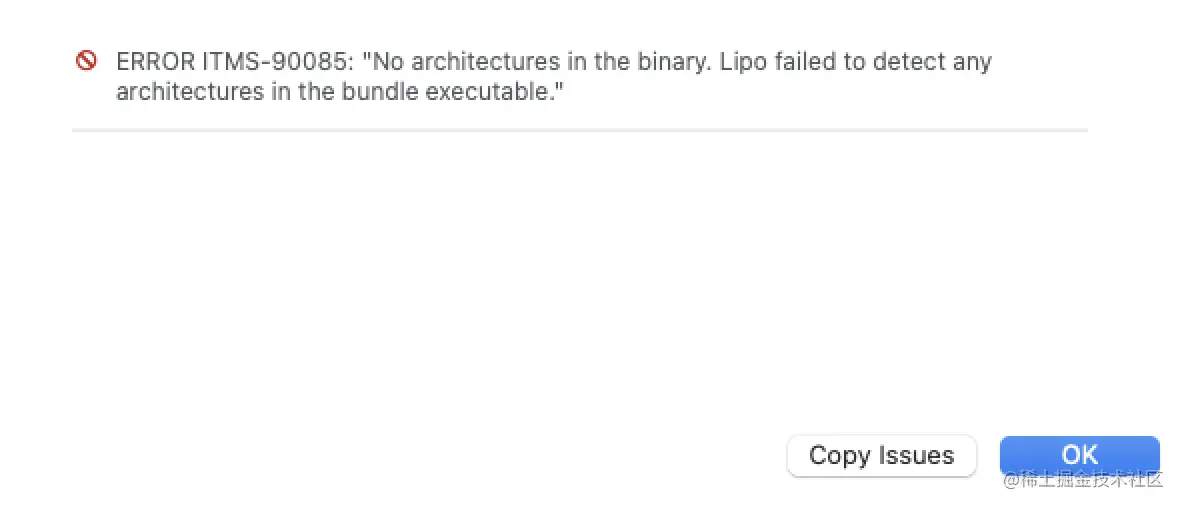 记录一次做iOS APP上传的时候遇到一个 error , ERROR ITMS-90085: “No architectures in the binary. Lipo failed to detect any