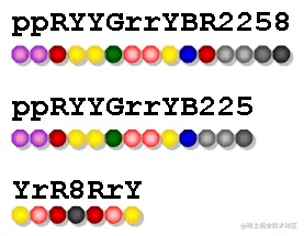 为了简单起见,我们用数字 ,以及大小写字母 来表示珠子的颜色。