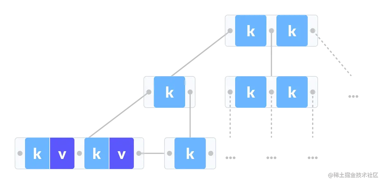- 每个节点最多可以包含m- 1个 键和至少⌈m/2⌉ - 1键。