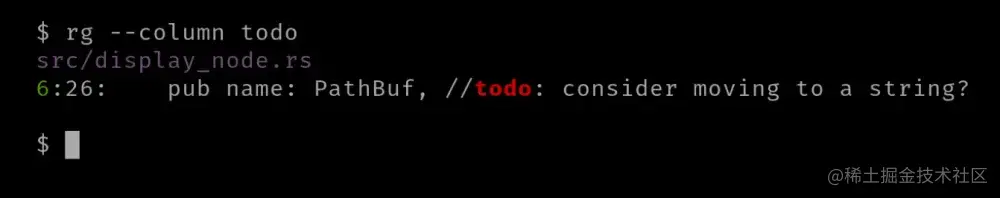 使用 ripgrep,无需提及文件名。如果未提供文件名,则搜索所有文件,如果您不知道哪个文件包含您搜索的模式,这将非常有用。
