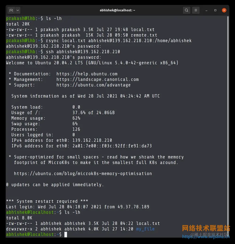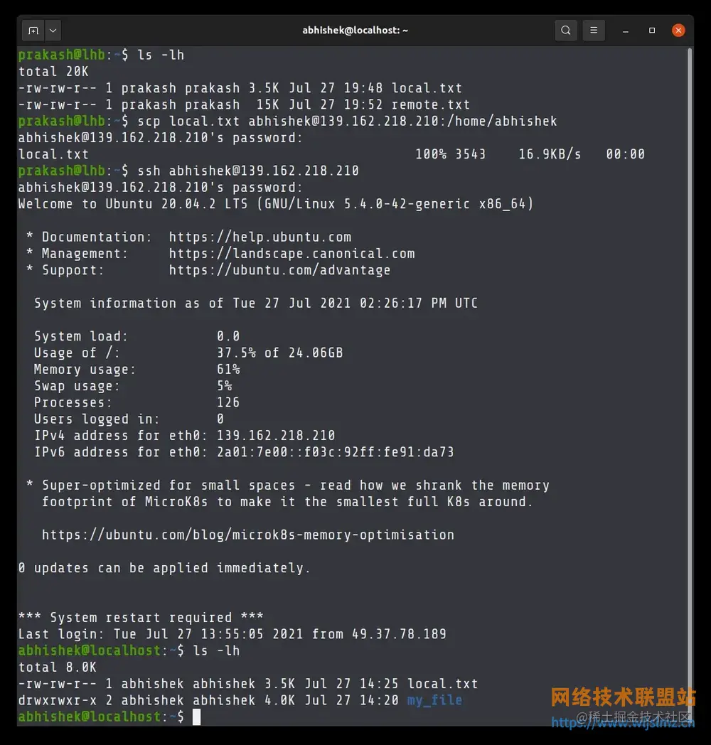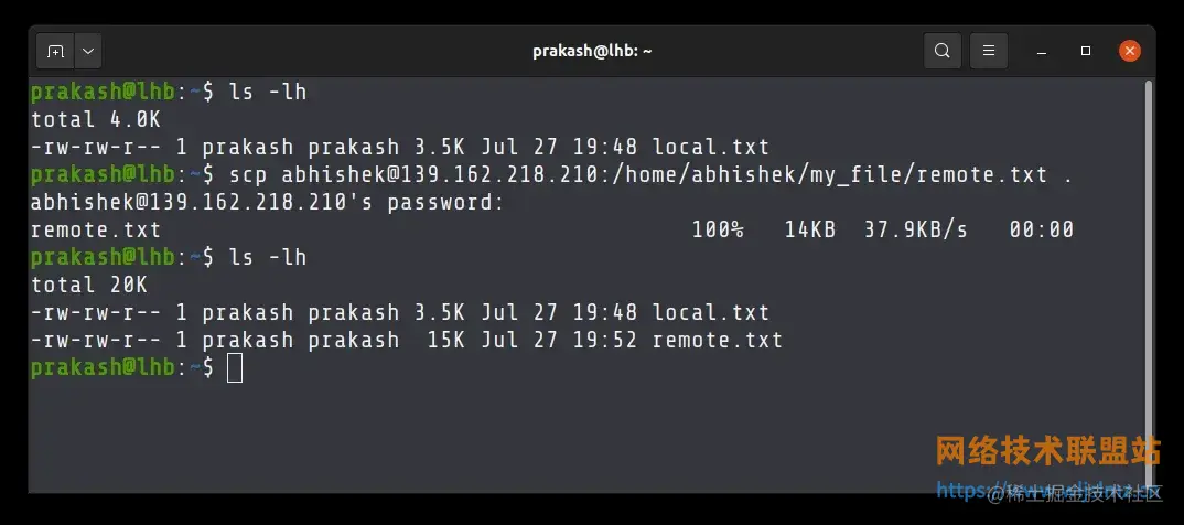 是时候看看现实世界的例子了,我正在将local.txt文件从当前目录复制到abhishek远程系统上用户的主目录。