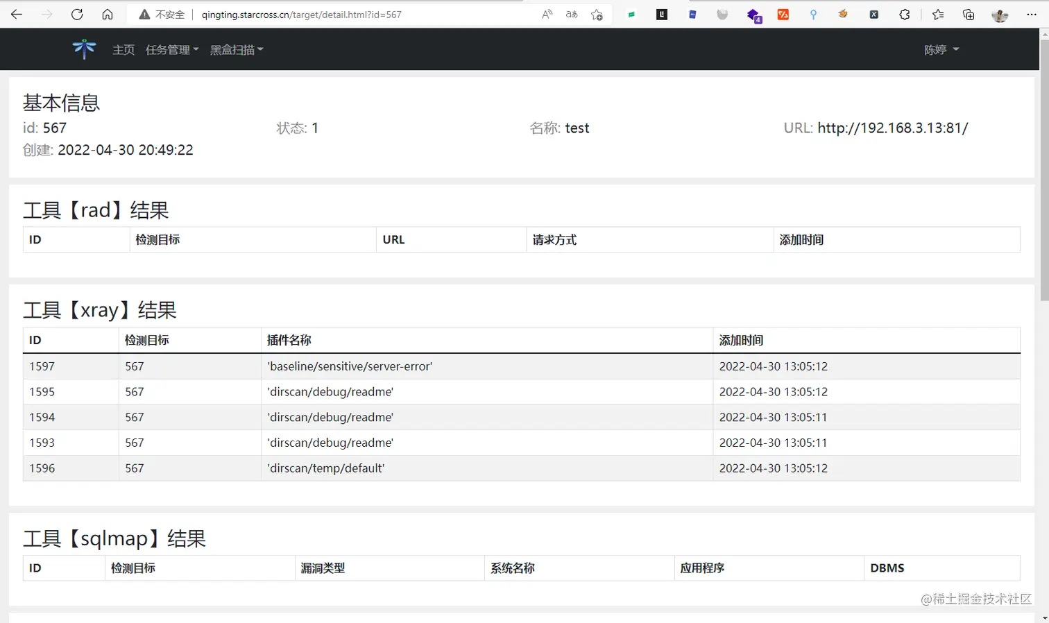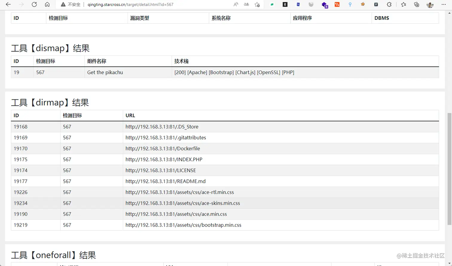 工具下载成功后会自己启动,然后会对目标进行扫描,目标结果如下图所示。