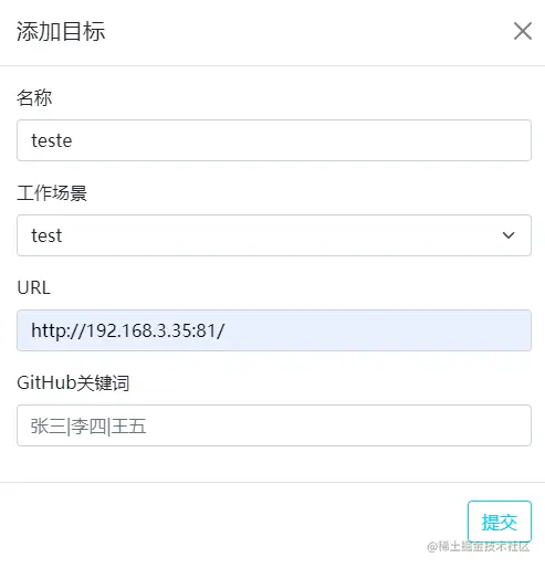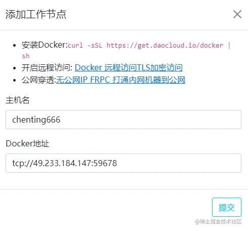 在添加节点的表单出,填写你要给节点的名字,节点地址则填写FRP服务端的地址,以上面的配置为例,地址则为