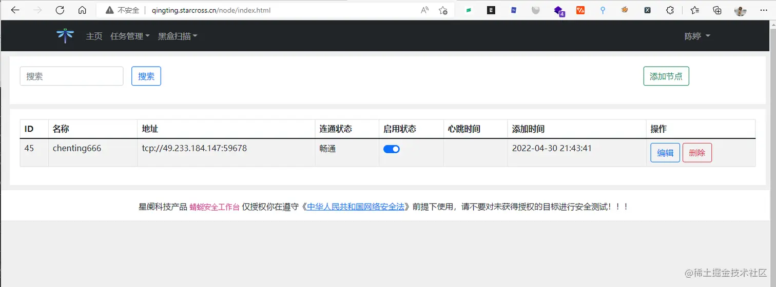 现在需要回到蜻蜓安全工作台页面中(qingting.starcross.cn/node/index.…)