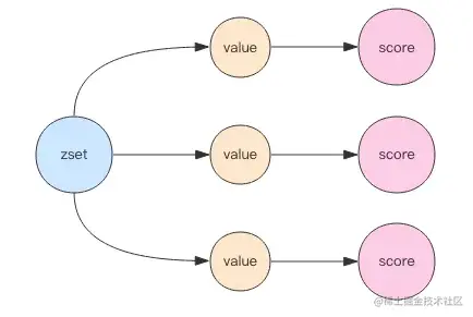 skipList:不满足以上两个条件时使用跳表、组合了hash和skipListhash用来存储value到score的映射,这样就可以在O(1)时间内找到value对应的分数;skipList按照从小到大的顺序存储分数skipList每个元素的值都是[socre,value]对
