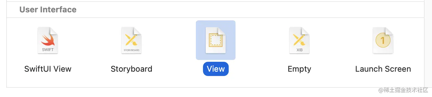 相对于情况一,那么情况二就是在创建控制器时没有勾选“同时创建xib文件”,然后再通过新建xib文件的方式搭建view界面,如下图所示的创建: