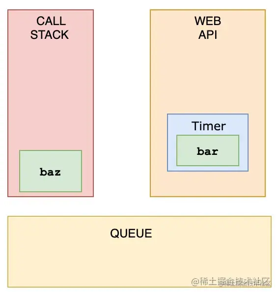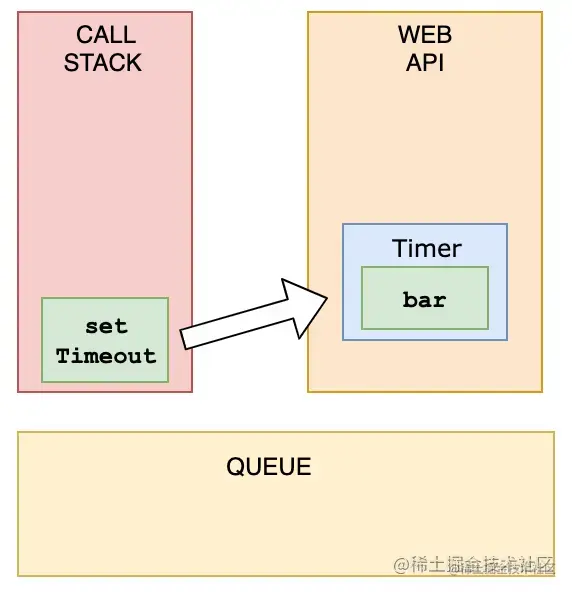 将callback推送到WebAPI后,setTimeout函数本身(但不是回调!)从堆栈中弹出。
