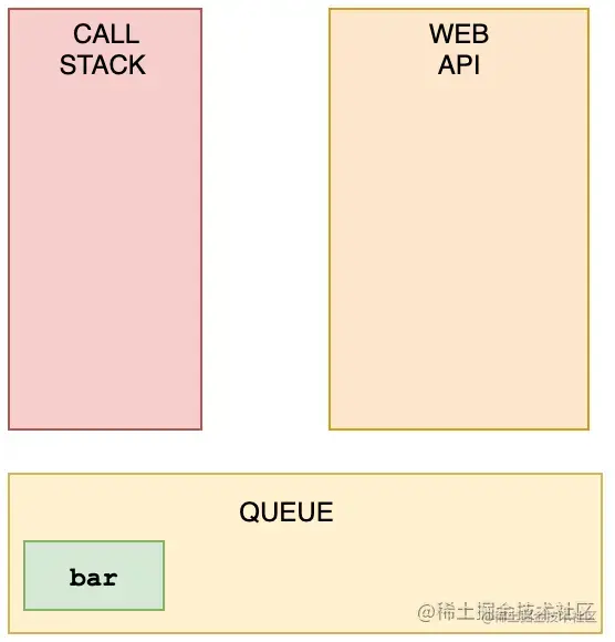 WebAPI不能只是在准备就绪时将内容添加到堆栈中。 相反,它将回调函数推送到一个称为任务队列的东西。