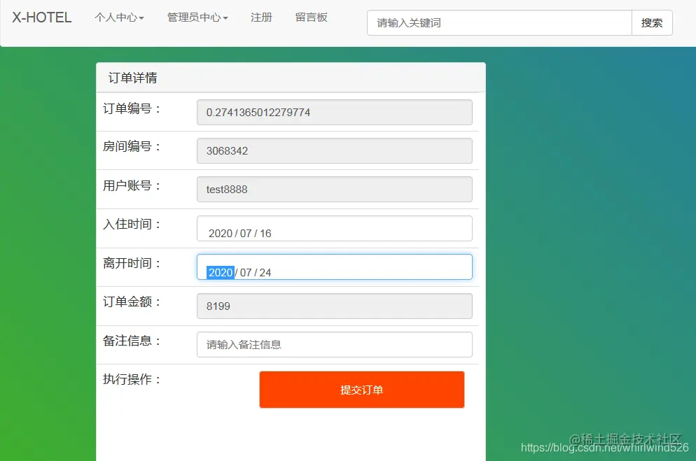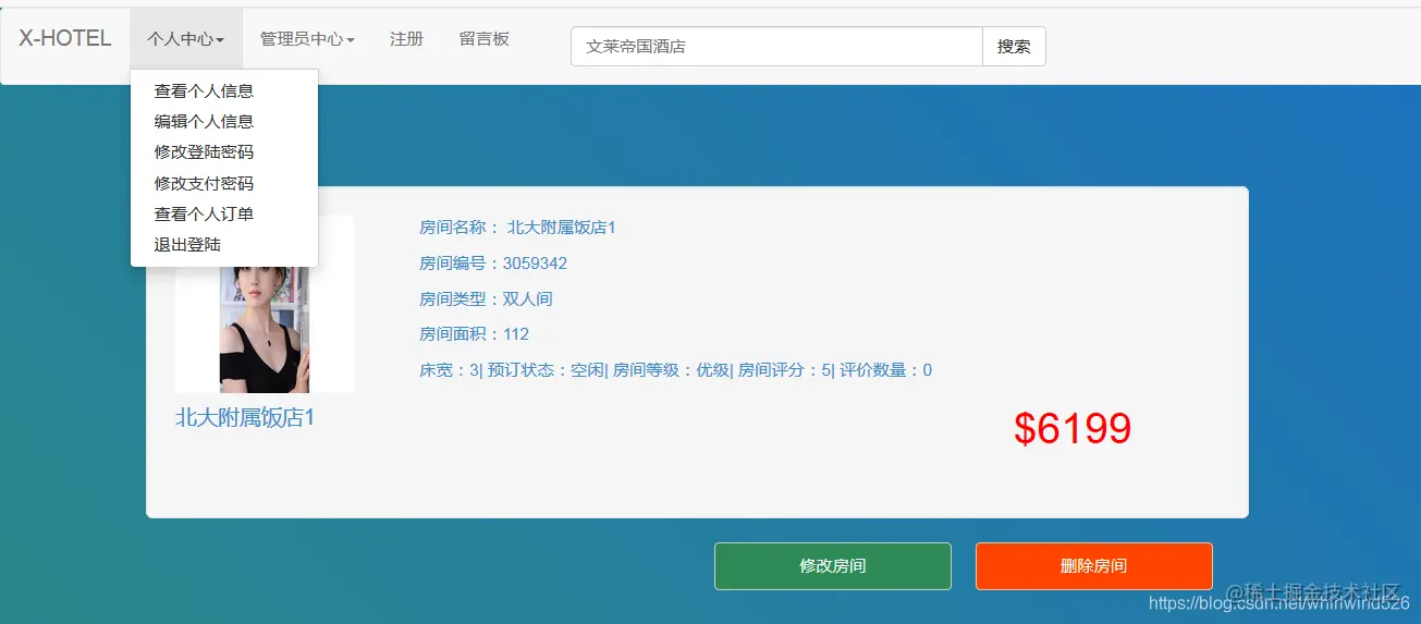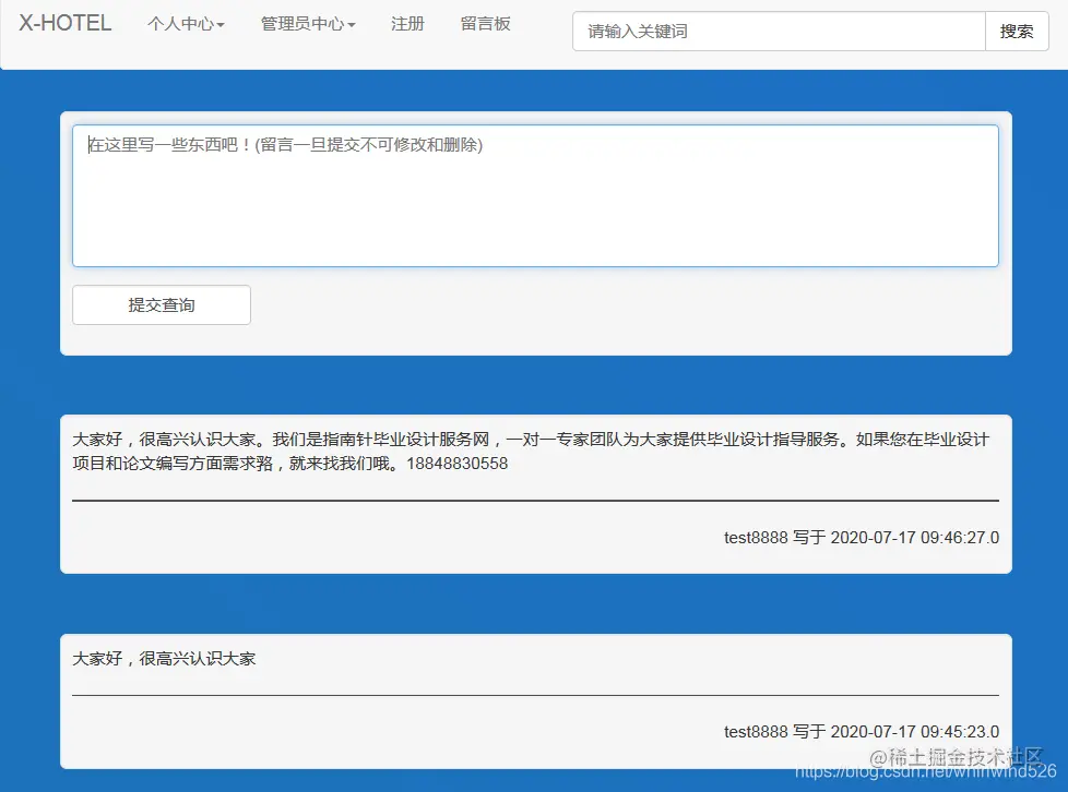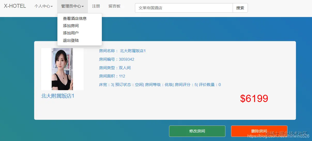 管理员:可以管理酒店信息(CRUD),用户信息添加,个人信息管理(信息修改,订单管理),留言信息管理。