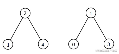输入:root1 = [2,1,4], root2 = [1,0,3]
