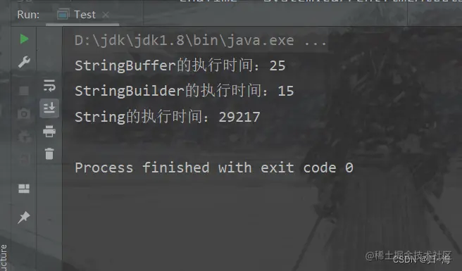 System.out.println("String的执行时间:" + (endTime - startTime));