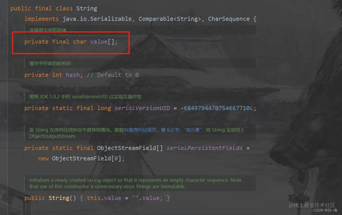 我们看看源码,发现value这个字符数组被final修饰了,怪不得String是不可变的。