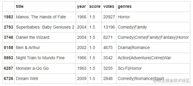 在这个过程中,我们寻找到了一些异常点,比如:评价较低但是投票数高。