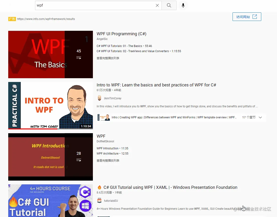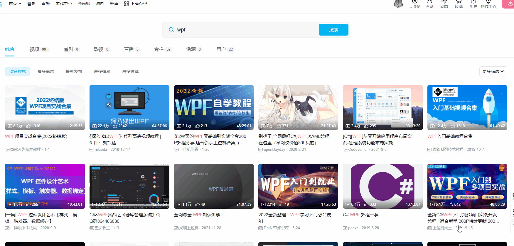 除了痕迹大佬的分享外,B站关于WPF的分享不少,比如打开B站搜索WPF,每页36个,共有28页搜索结果: